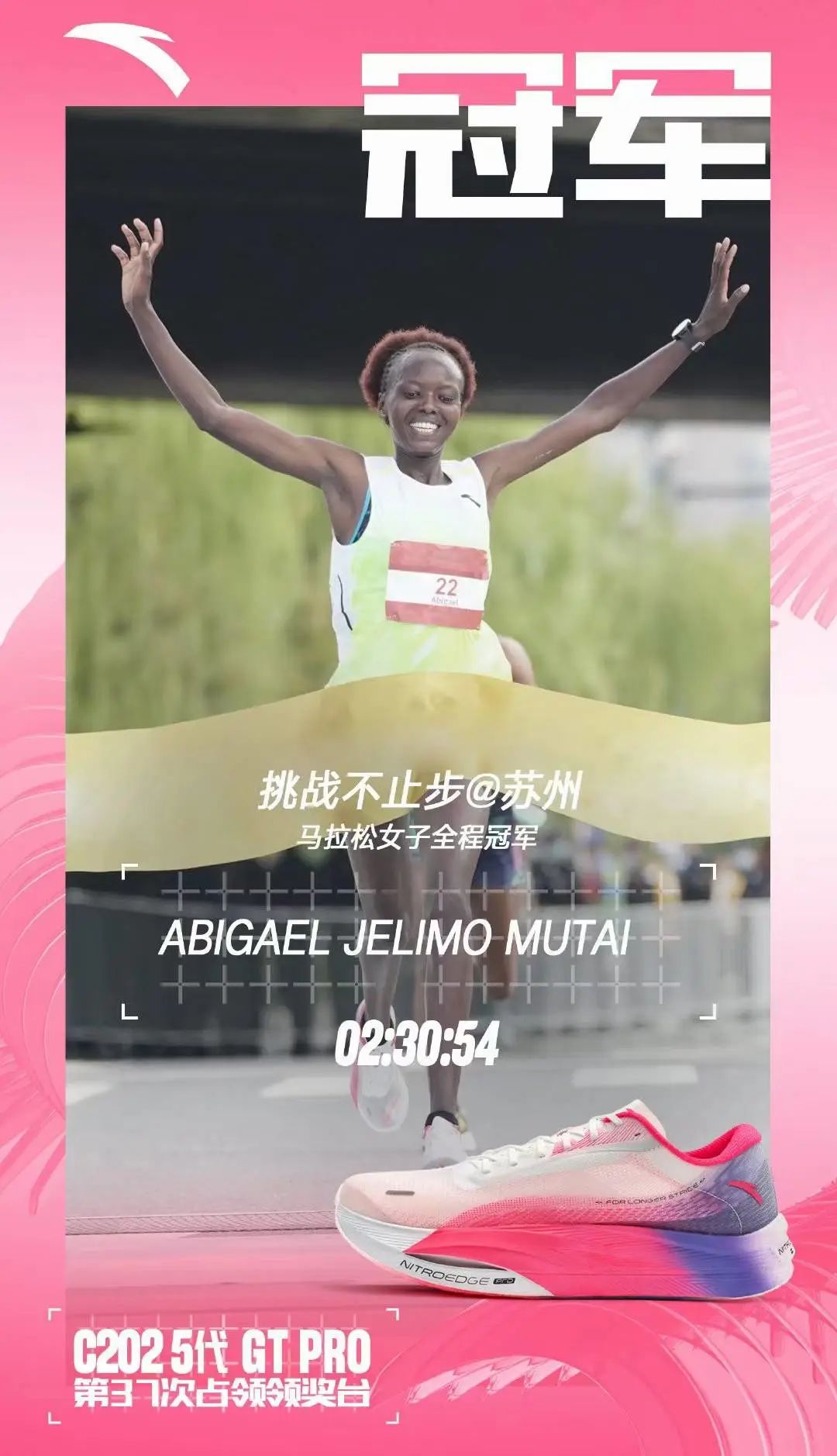 同日,在山东东营举行的马拉松赛事中,埃塞俄比亚选手Ruti Aga Sora,装备相同款跑鞋勇夺桂冠,成绩为2小时18分09秒,该比赛成绩更是一举打破中国境内最快马拉松女子纪录。